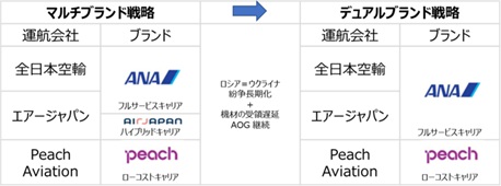 ANAグループは、ANA、関西=アジア路線を中心とするPeach、2024年以降成田=シンガポール線などを就航したAirJapanの3つのブランドを活用したマルチブランド戦略で、世界の旅客需要の獲得に取り組んできた。