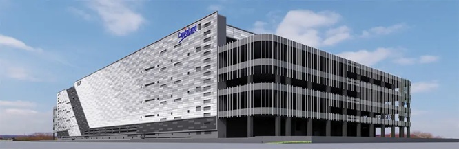 【 構造 】5階建て多層階ランプ型 常温/部分空調倉庫、高さ40mの自動貨物保管エリア有