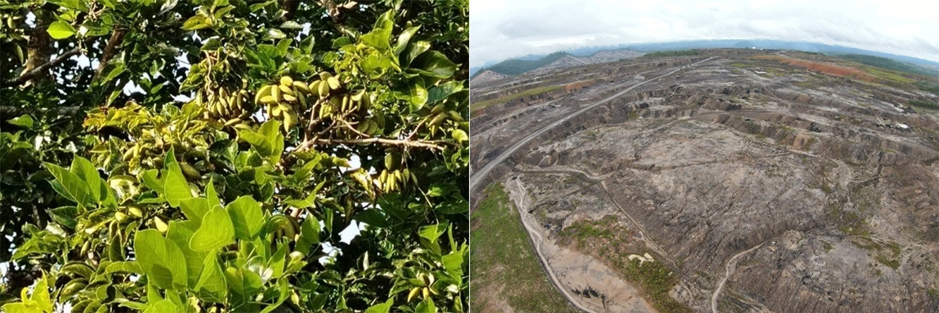 ポンガミア(左)と試験栽培プロジェクトを実施する炭鉱跡地(右)